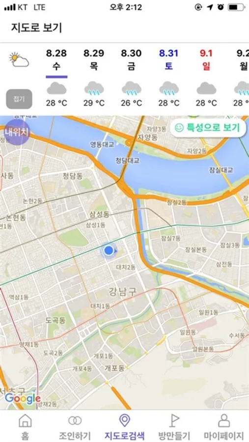 지도에서 조인 가능한 골프장 위치를 한눈에 확인 하고, 빠르게 조인하기.