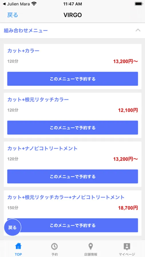 の登録が出来るので前もって担当者を登録しておけばマイページからスムーズな指名予約が可能です。