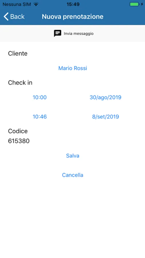 The program allows you to record a reservation to a customer stored in the phonebook, assigning a checkin date and time, a checkout date and time and an access code to be entered on the Doory keyboard to open the door.