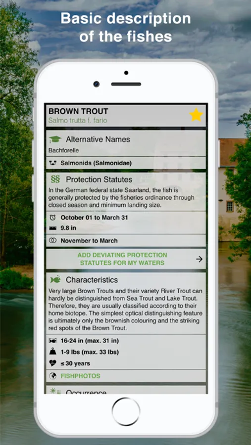 which species of fish come or were found in Saarland? Are they native or immigrated? What are the protection landing sizes and the closed seasons? Are the animals under species protection? How do closely related species differ from one another? The Fishguide Saarland App answers these and other questions.