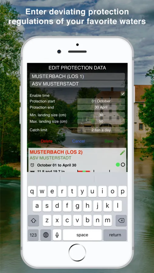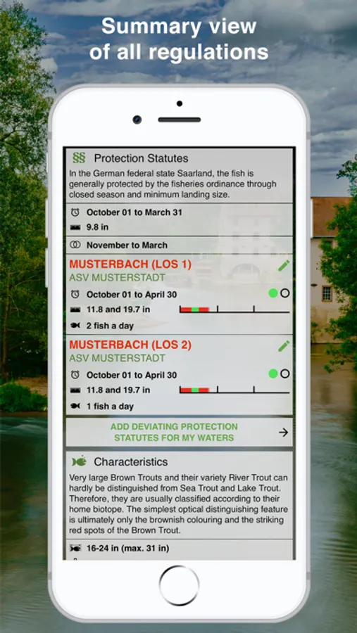 In addition, every user can enter and compile additional and individually deviating closed seasons, landing sizes and catch limits for his or her target fish for "his" waters.