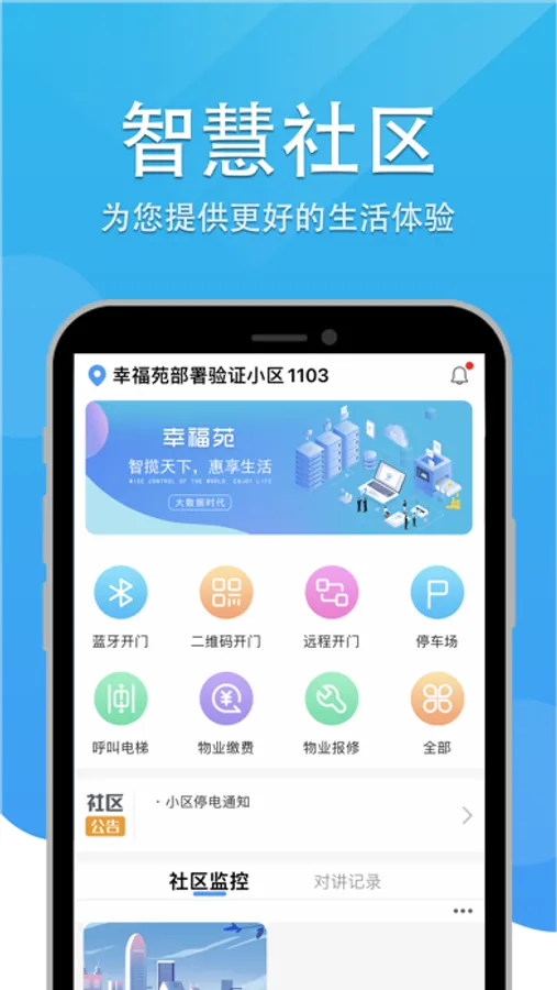 幸福苑是一款综合性的社区服务提供APP,主要功能包括基础物业服务,实现线上物业缴费、物业公告、线上报修等,同时可以整合社区智能化系统接入到APP,提供云呼叫、云监控、线上支付等增值服务。