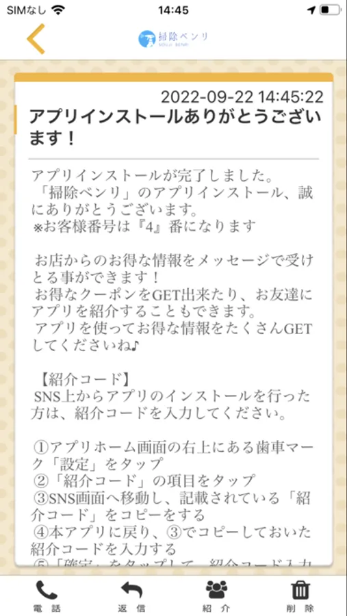 掃除ベンリのアプリをSNSを通じてお友達に紹介する事ができます。