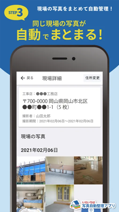 自社の職人さんや仲間と写真と住所を自動的に共有できます。
