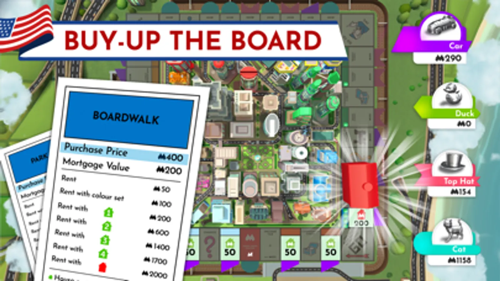 Be the top landlord tycoon on new themed boards, exclusive to the mobile game. With 10 boards, no 2 games are the same! Risk it all in the L.A. Monstropolis alternate universe. Be spooked in Transylvania. See the future in New York 2121, or travel back in time to Victorian London, Historic Tokyo, Belle Époque era Paris and 1930s Atlantic City! Unlock new player pieces, properties and chance cards with each theme!