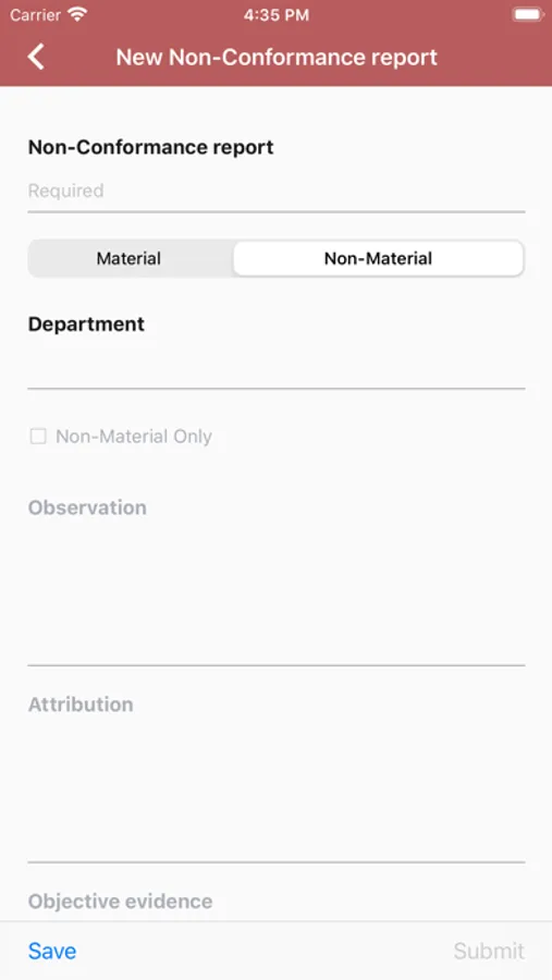 Non-Conformance Reporting mobile app provides the ability to report Non-conformance across all type of origins . Offline and tablet mode supported. Optionally, pictures can be attached to IDM using phone camera.