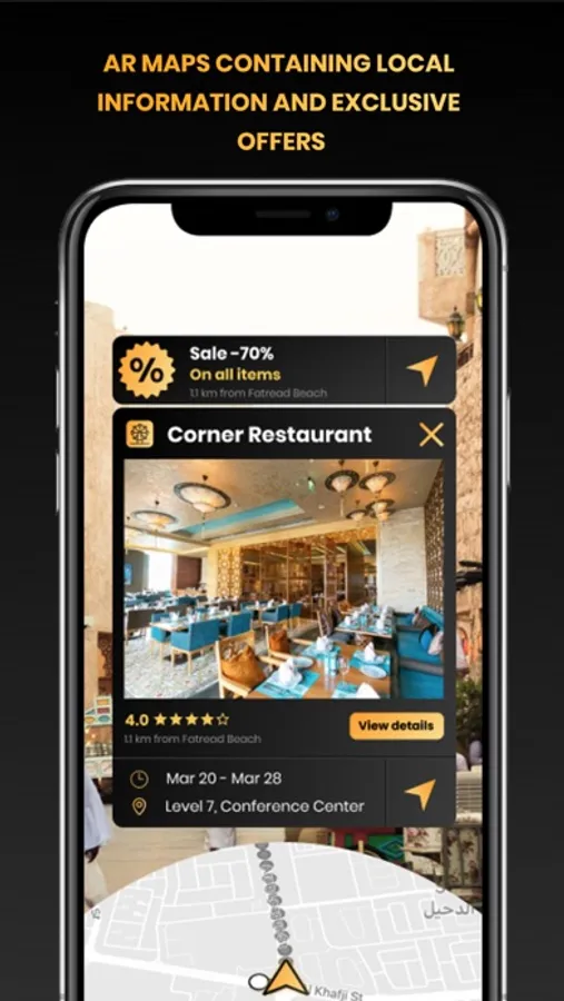 We don’t stop at just finding what you need. Our augmented reality map feature will guide you to your destination providing information on local points of interest and exclusive offers along the way.