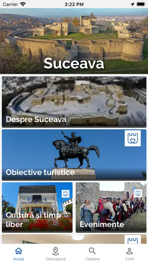 Suceava CityApp is a tourist application used by both tourists and locals with various interests that are offered detailed information on most attractive POIs and events in the area, as well as on existing local services (accommodation, restaurants, bars, tourist info points and offices) or local news (city hall press reports).