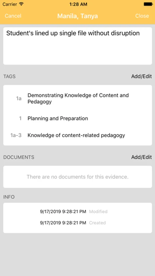 The OnCourse Evaluate App makes the observation process easier than ever, allowing observers to review and edit observation evidence on the go. Record evidence, attach images and add tags all right from your mobile device.