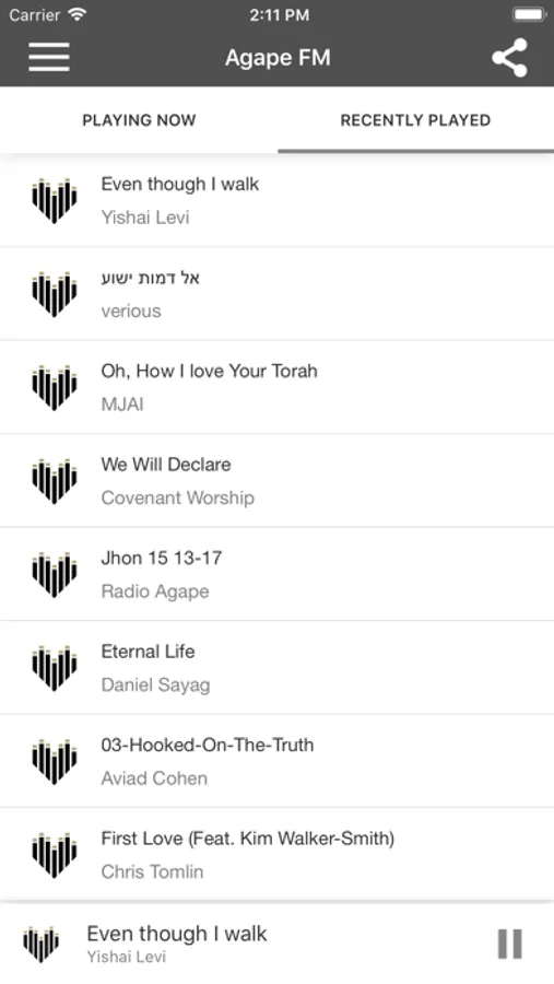 Radio Agape.fm is the one and only radio station in Israel for believers in Yeshua (Jesus) and for those who seek Him! The station has Messianic music from mainly local Israeli artists, in Hebrew and English. We air in-depth teachings of the scriptures in Hebrew and English from a Hebraic perspective, along with encouragement segments from the scriptures. We are continuing to develop more programs and materials to bless our listeners in Israel and around the world.