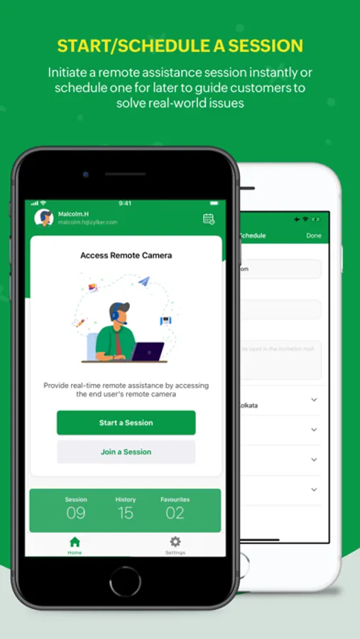 Agents can initiate a quick session and share the Join Now link to the customer. Sessions can also be scheduled based on convenience.