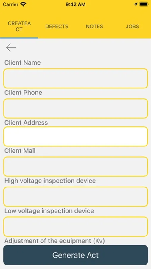 APP allows you to enter all the necessary information, such as the object, the materials used, its area, the customer and the inspector.