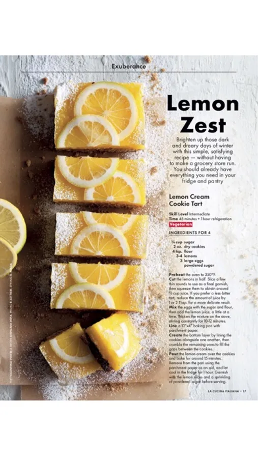 Since 1929, La Cucina Italiana has brought the Italian taste to the table, becoming Italy's most iconic gastronomic magazine. Now we set the table for you with traditional and contemporary recipes, enchanting stories, mouthwatering travel itineraries, fine food & wine news, and much more. Authentic Italian Cooking since the 1920s, in a magazine published four times per year, full of recipes, stories, hotspots and news to discover all the tastes and colors of the italian food and wine, the best itineraries for a gourmet trip to Italy and the way italian food is changing and evolving in the United States.