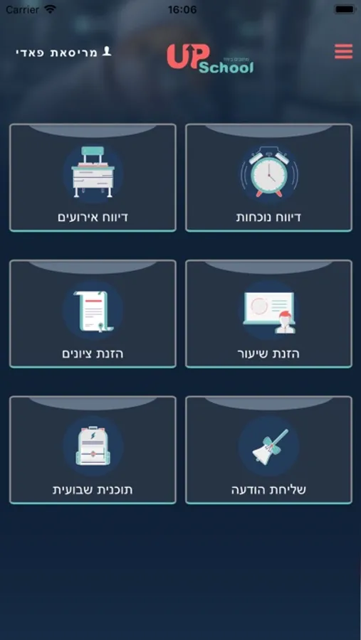 אפליקציית UpSchool למורה הינה חלק מפלטפורמת UpSchool לניהול פדגוגי של בתי ספר. האפליקצייה משמשת את המורים לדיווח נוכחות, ציונים, אירועים פדגוגים ועוד בבתי הספר.