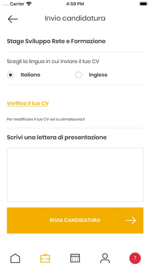- attivare il sistema di notifica per essere sempre aggiornato sulle offerte di lavoro e sugli eventi.