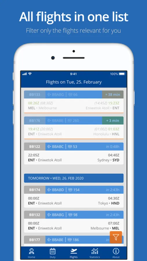Get a simple list of all flights that might be important in your stand-by - or check which plane is the one you will board after your briefing. With detailed filters you can exclude flights you are not interested in.