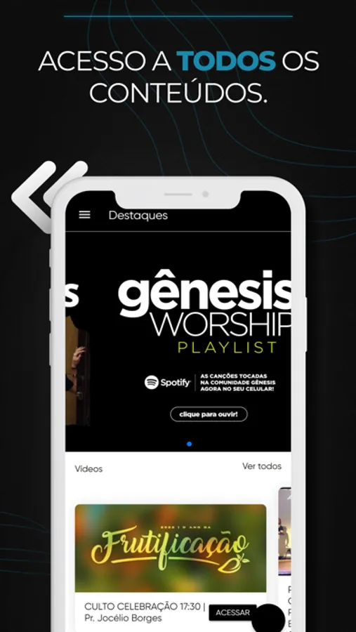 Aplicativo Oficial da Gênesis Church conta com as seguintes funcionalidades: