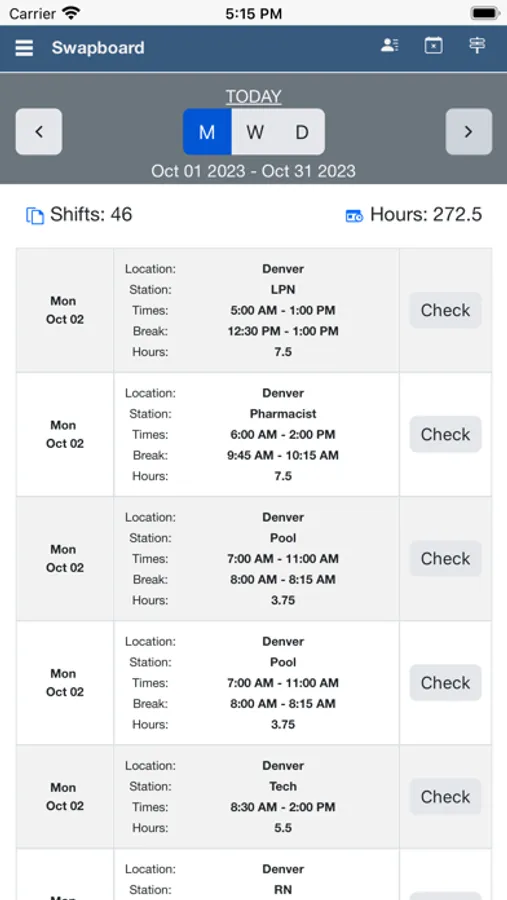 See available shifts, either shifts with no other employee assigned or ones posted by other employees.