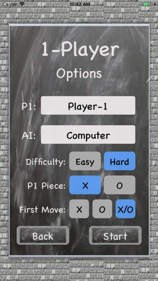 -Play the computer on easy or hard difficulty