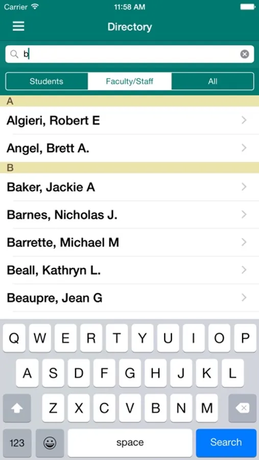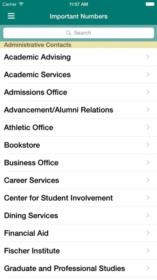 * Search the directory for students, faculty, and staff, using a tap to call or send an email;