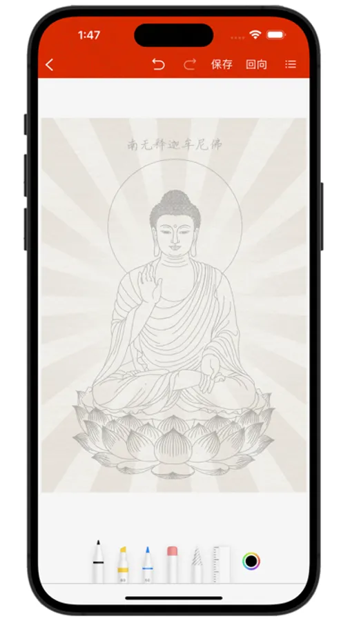 1、抄写经文:无纸化抄写经文,绿色环保,经文完成后可保存为图片;