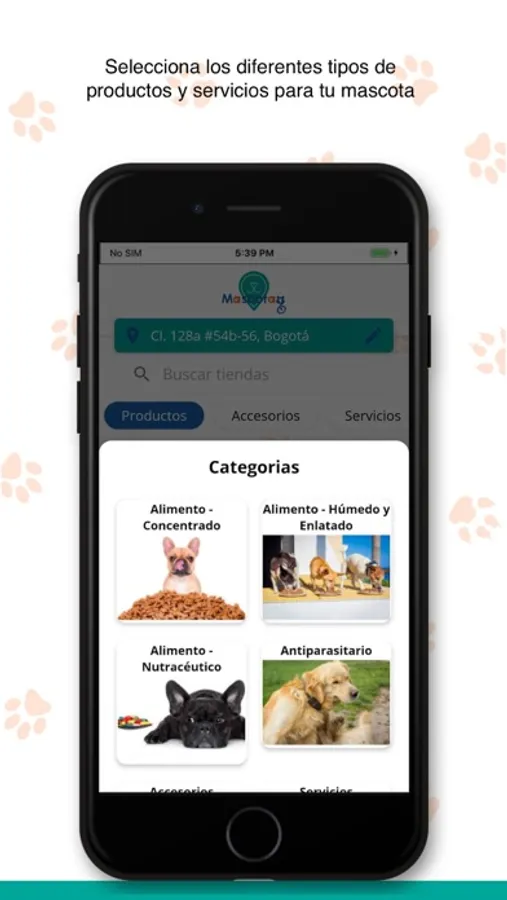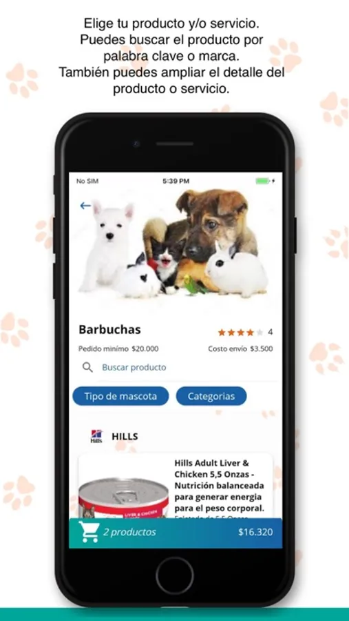 * Selecciona la categoría de tipo de mascota y el producto o servicio que necesitas.