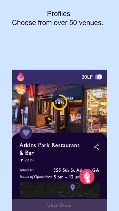 Earn points for going out, inviting friends, and rating the litness of bars! Share the app with friends and earn points together at each place you go. Be sure to rate the litness of each venue you visit to maximize the amount of points earned and help other users to get lit!