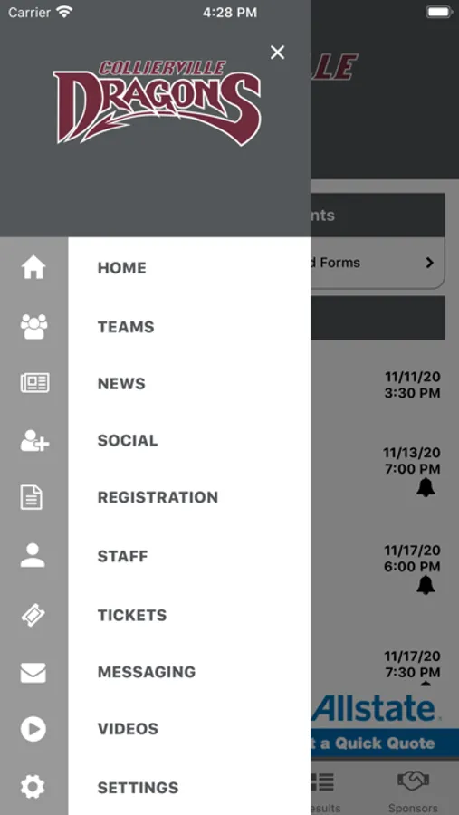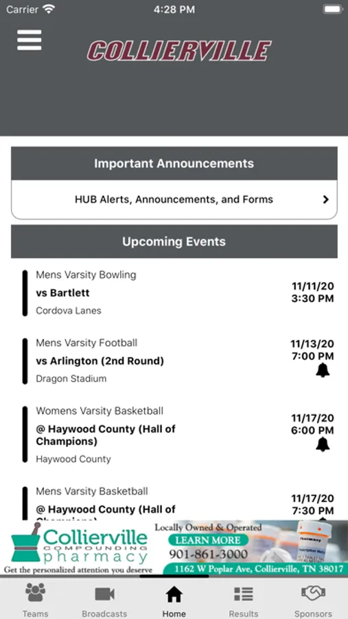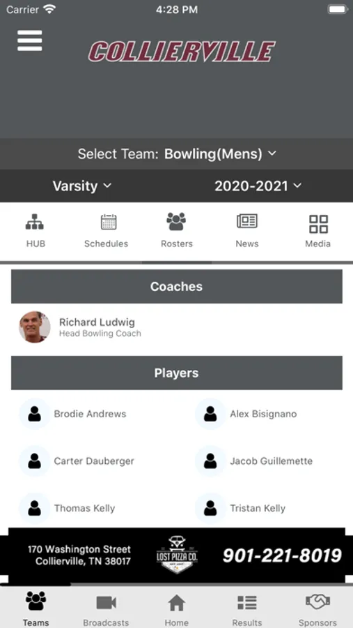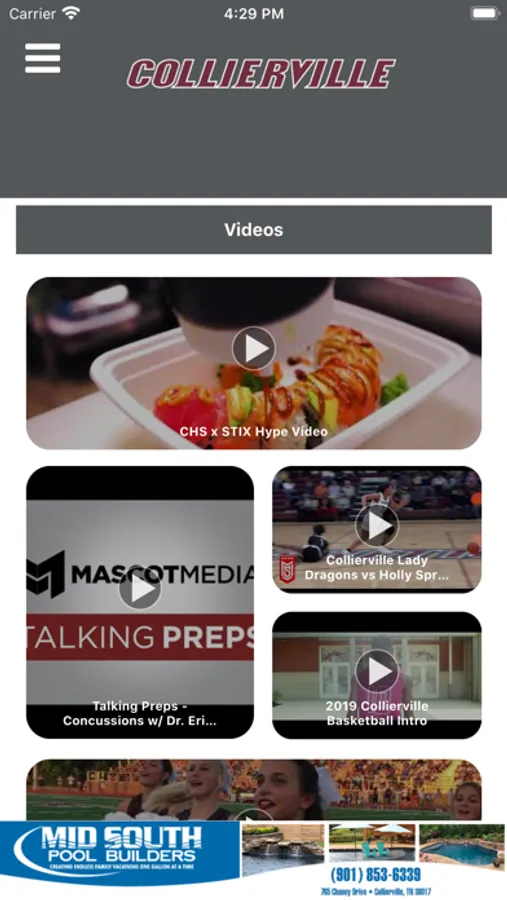 - Supporters: Special Thanks to local boosters and supporters of Collierville Dragons Athletics with a directory including website and in-app calling.