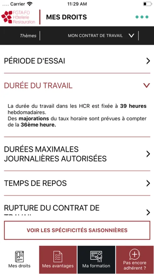 Consciente de vos besoins, la FGTA-FO a conçu pour vous une application permettant à tous les salariés (y compris saisonniers, extras...) du secteur des hôtels, cafés, restaurants d'avoir accès en temps réel à l'évolution de vos droits.