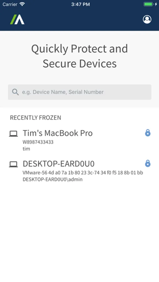 The Absolute Control mobile app brings the power and flexibility of the Absolute platform to your smartphone. Dynamically search for any device in your organization, monitor key security vitals and lock a device to render it completely inoperable, all through a few swipes on your phone.