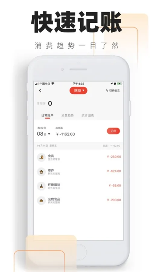 您可以记录账单,看看一年您给您的宠物主子花了多少钱,你可以记录包括宠物粮食,宠物玩具,宠物服饰,宠物医疗等等几十种日常支出,各种汇总的数据,包括按周、按月汇总等等。以及每种支出所占的比例 ,让您对账单一目了然。