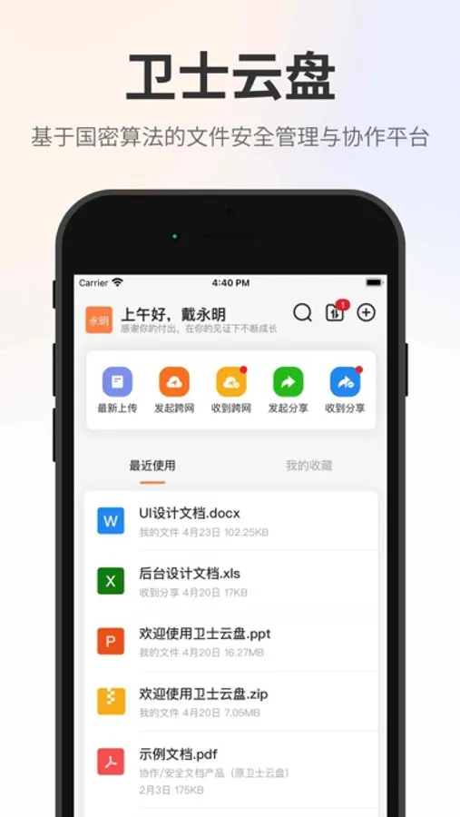 - 基于符合国家规范的安全技术和密码算法设计,采用业界顶尖的体系化安全方案,提供文件全生命周期的安全保护。