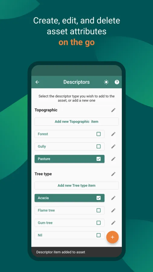 - Seamlessly collect sample data for assets (automatically time stamped and geotagged)