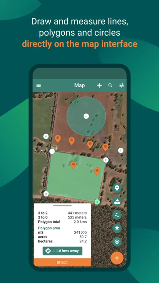 - Draw and measure lines, polygons and circles in the map.