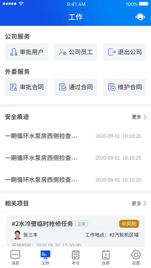 安全全过程管控APP 平台通过动态标准安措库、电子化风控等信息手段,形成涵盖标准库维护、现场作业风控学习、现场风控考试、现场安全痕迹记录、事故分析与追溯等多功能的APP平台,有效解决现场风险识别、现场作业安全执行监督以及安全管理责任划分与追溯的管理目标,使安全管理落到实处、变被动安全为主动安全。