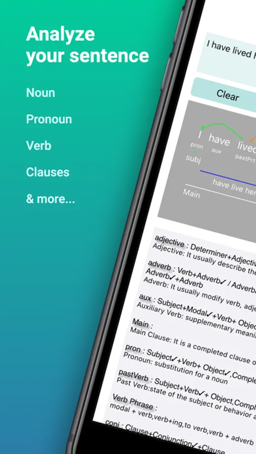 This app analyzes an English sentence grammatically when you type an English sentence.