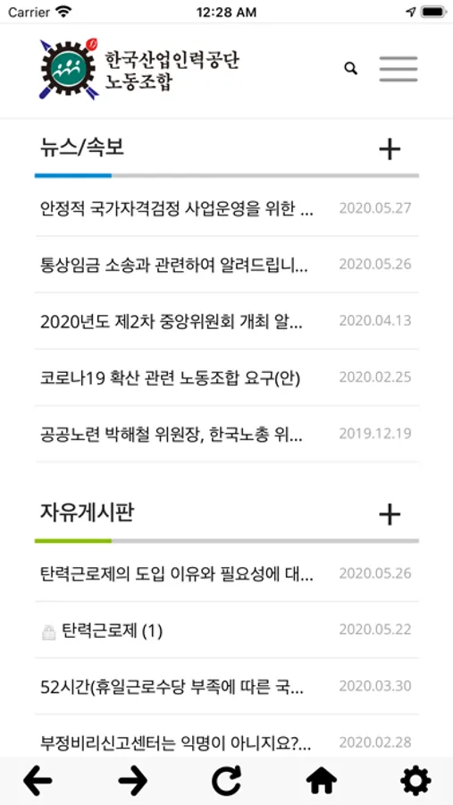 한국산업인력공단 노동조합 웹사이트와 연동하여 홈페이지의 각종 정보를 빠르게 조회하고 이용할 수 있습니다.