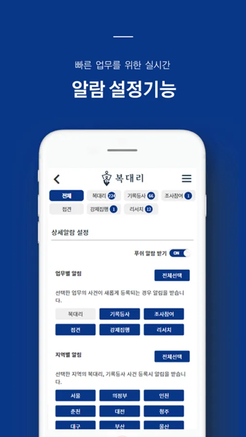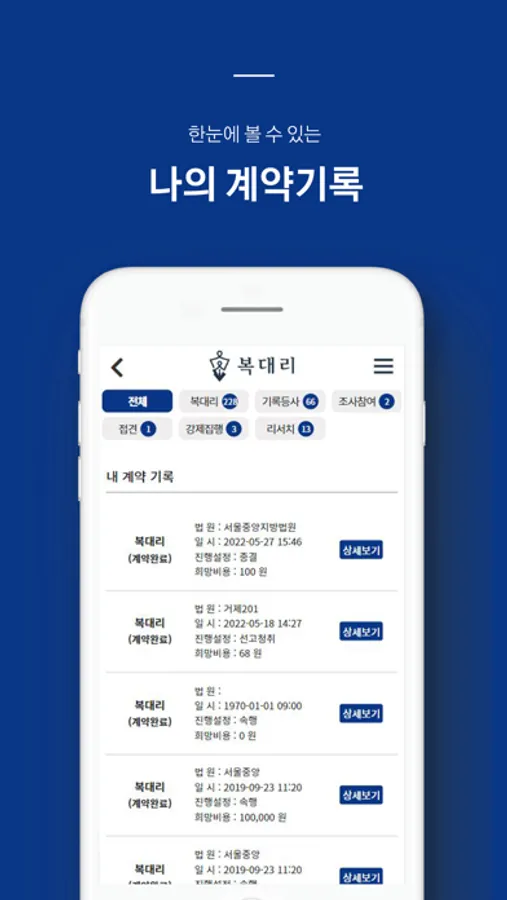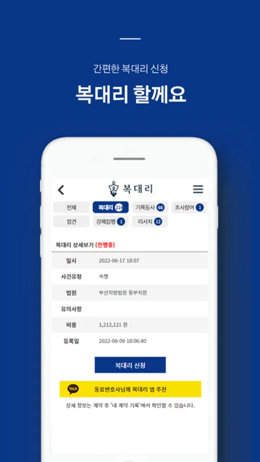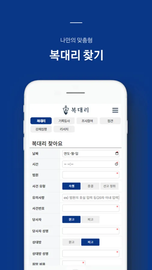 - 앱을 통해 복대리 업무 희망 변호사님들을 연결합니다.