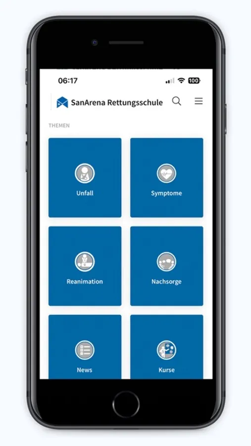 Mit der SanArena-App lernt der Anwender/die Anwenderin in Notsituationen schnell und unkompliziert das Richtige zu tun.