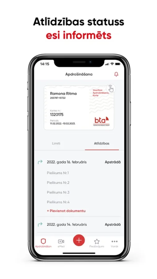 BTA Veselības apdrošināšanas lietotne saviem klientiem piedāvā:
