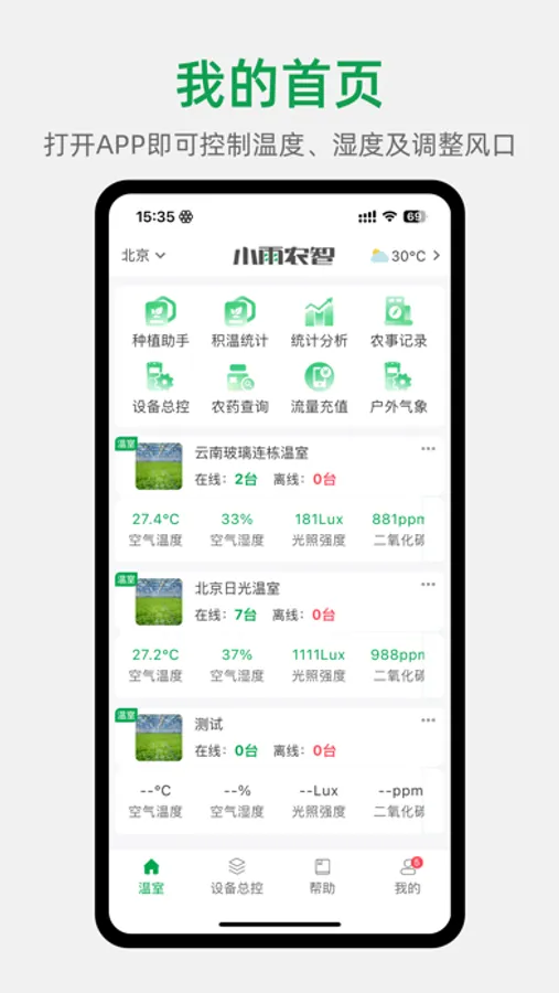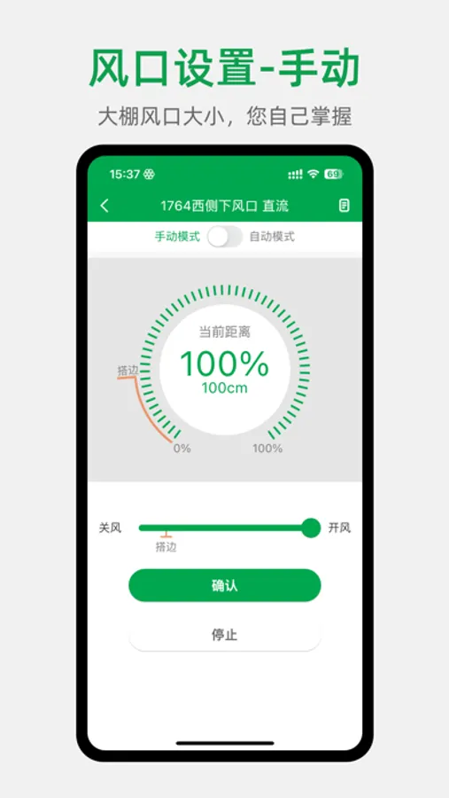 1、【远程操作】无论何时何地打开手机APP即可随时监控大棚温度、湿度,及时调整大棚通风口。