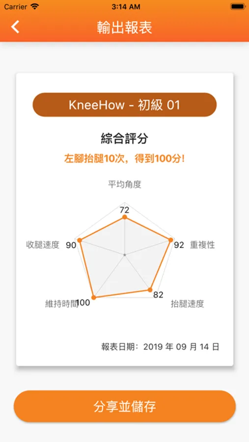能測量膝關節角度,輔助護膝運動,視覺及聽覺即時引導,方便居家使用,報表協助膝力健康管理,以收健康促進之效。