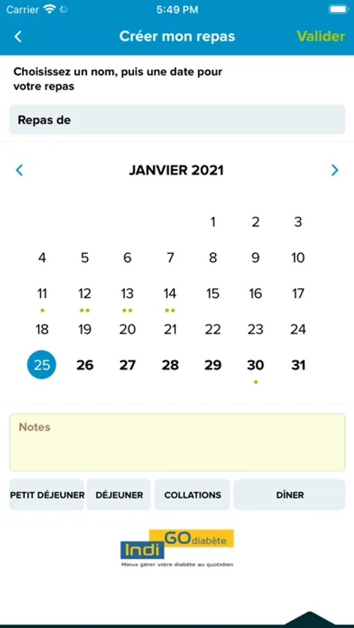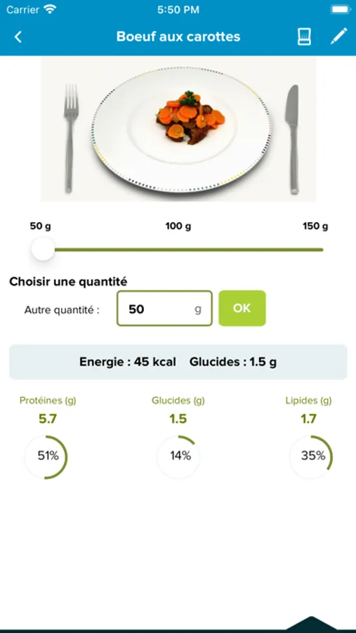 Avec près de 900 aliments enrichis de conseils diététiques et 144 plats « préparés », l’application Diabète Gourmand vous permet de calculer l’apport nutritionnel en glucides, protéines, lipides et énergie (kcal) de chaque repas. Vous contrôlez ainsi votre alimentation et conservez l’historique de vos repas, jour après jour (rubrique « Calendrier de mes repas »).