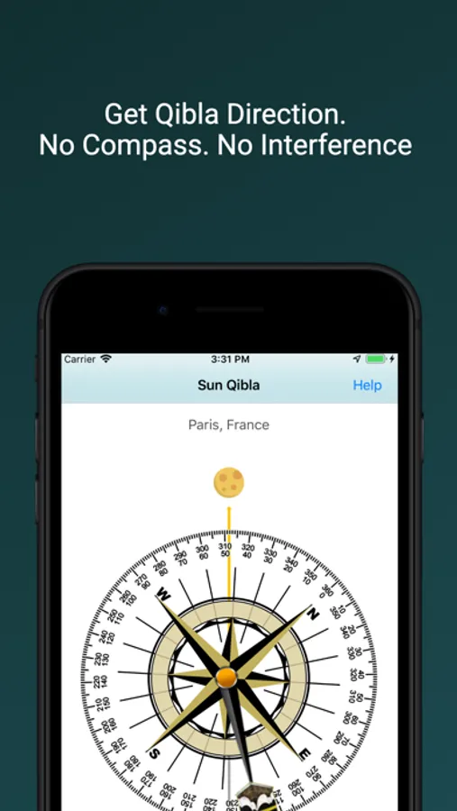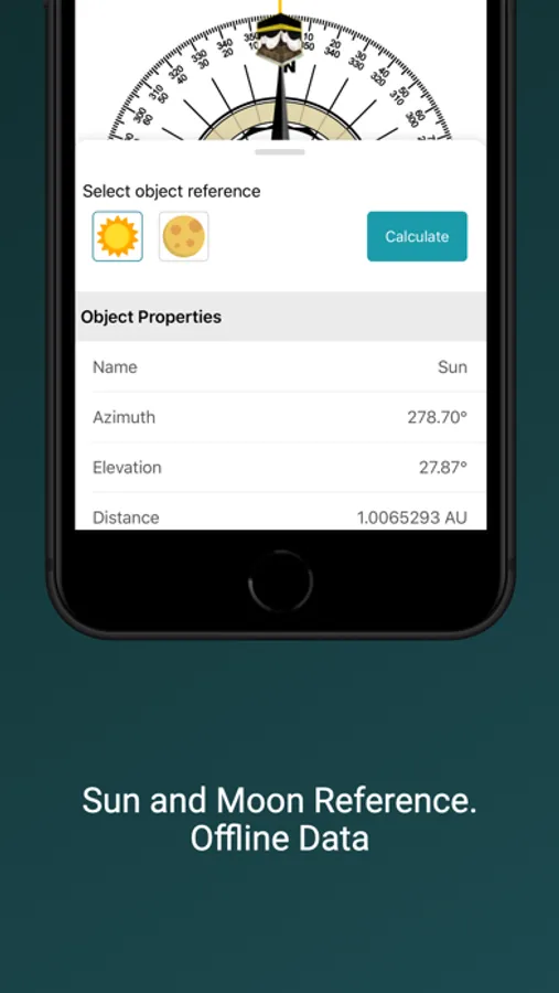 Using device's location, this app will calculate the direction of Qibla using Sun or Moon position. This app is not using compass or magnetic sensor, so it's free from magnetic interference. Please make sure the Sun or Moon is visible on the sky while using this app.