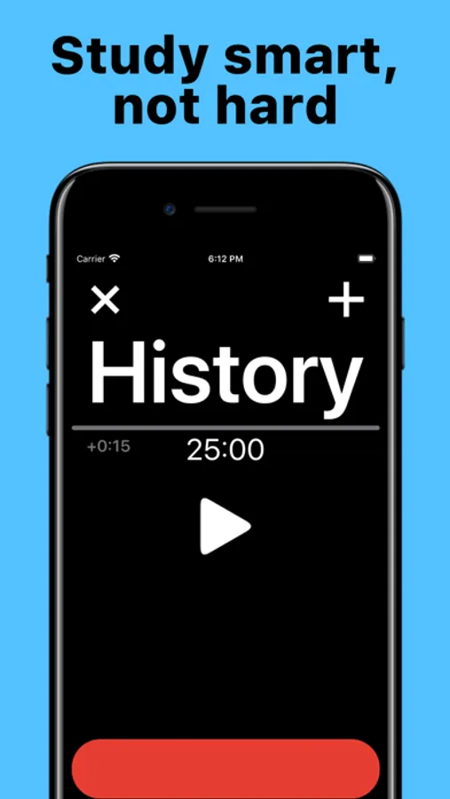 The app’s timer follows a 25 minute work, and 5 minute break cycle, because psychological research says that 25 minutes is about how long most people can concentrate, and 5 minutes is about how long most people need to reset their concentration.