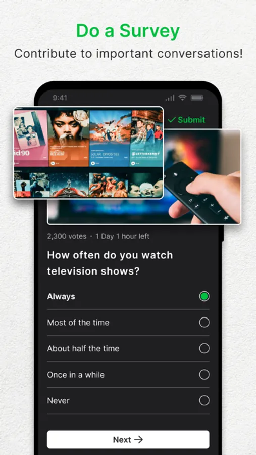Share your opinions by voting on image, text, or video polls and earn exclusive rewards.