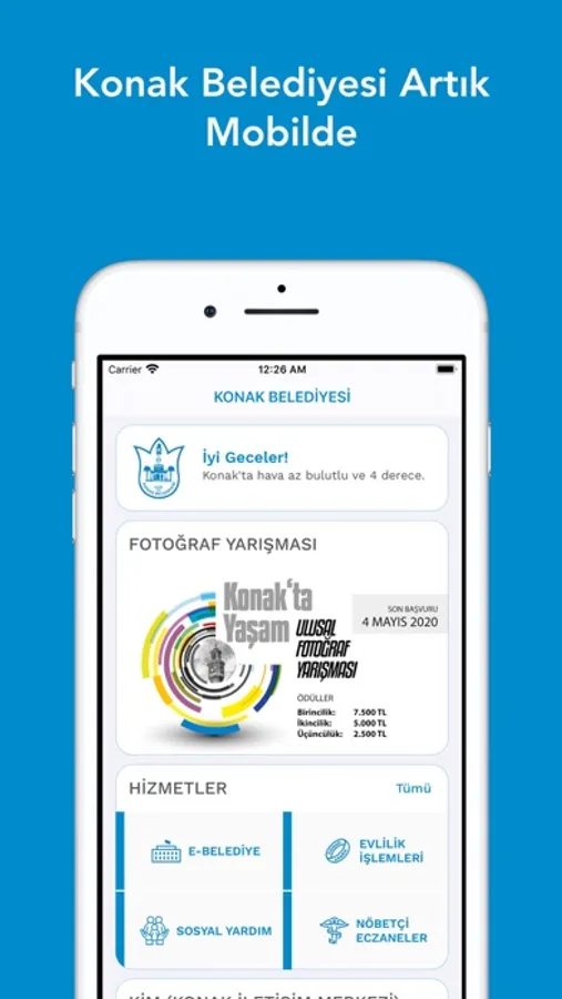 Konak Belediyesi mobil uygulaması üzerinden vergi borçlarınızı ödeyebilir, etkinliklerimiz ve çalışmalarımızdan haberdar olabilir, kent rehberine erişebilirsiniz. Ayrıca Konak ilçesi sınırlarındaki nöbetçi eczanelere de uygulama içerisinden ulaşabilirsiniz.