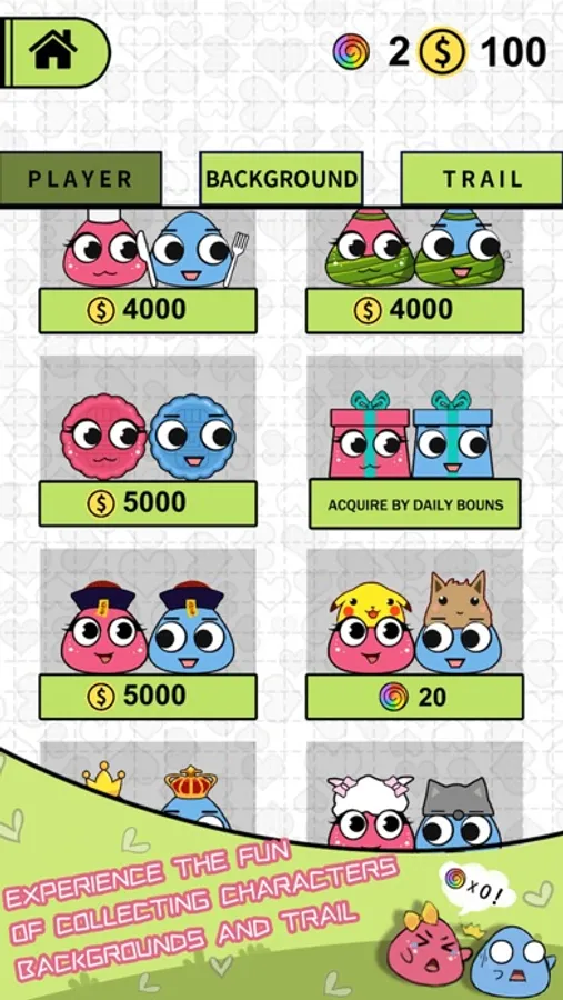 Experience the fun of collecting characters, backgrounds, and trail