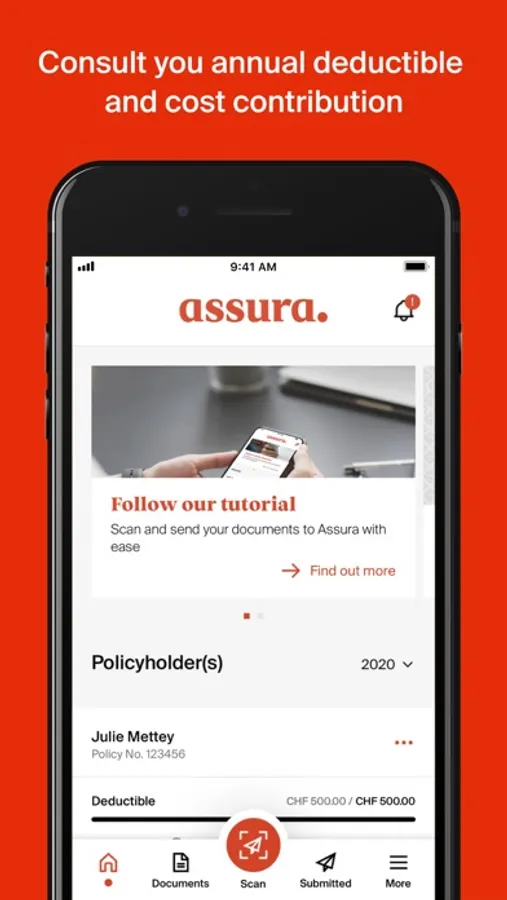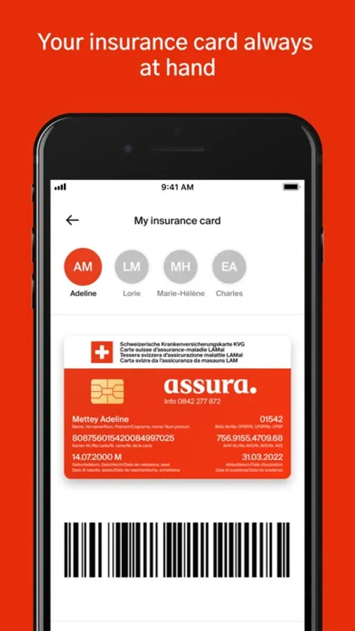 You can create your account directly in the Assura app. This account also allows you to access the Customer Portal e-assura.ch
