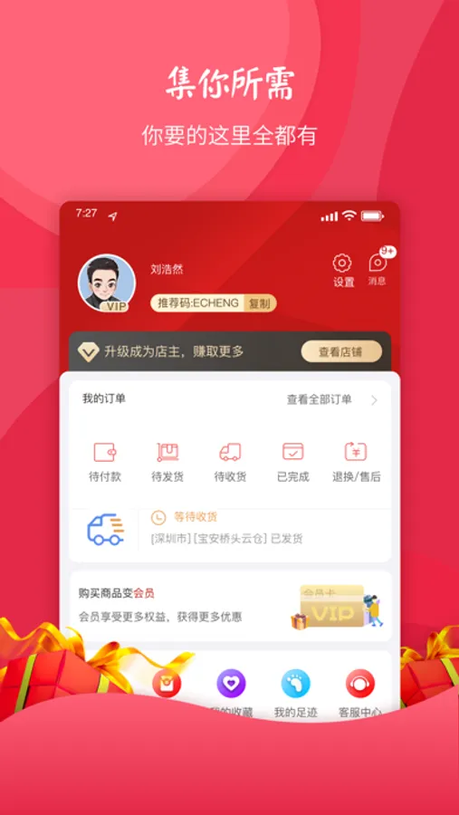 0门槛开店:用户可通过有效身份信息免费升级为店主,一键开启自己的精品超市,分享成功即可赚取商品差价,实现私域流量价值再变现。